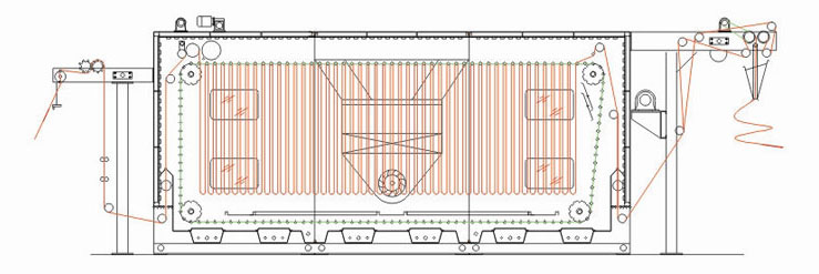本機適用于純棉機織物、針織物、毛巾經(jīng)活性染料印花后的汽蒸固色工藝。